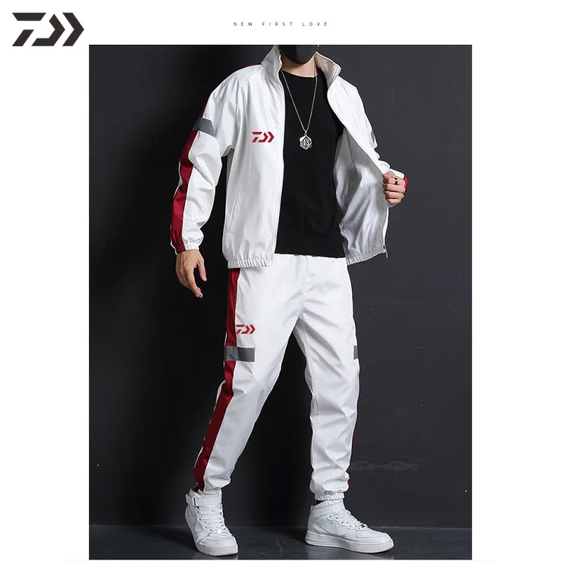 Daiwa Sports Suit Men Spring Autumn Fishing Suit Breathable Fishing Clothing Striped Fishing Pants Sweatpants Fishing Jacket Men
