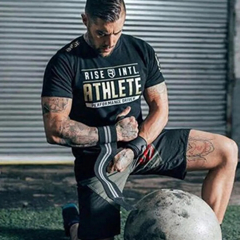 Men gym Professional training t shirt Fitness Bodybuilding short sleeve cotton shirts workout clothes Crossfit tee tops clothing
